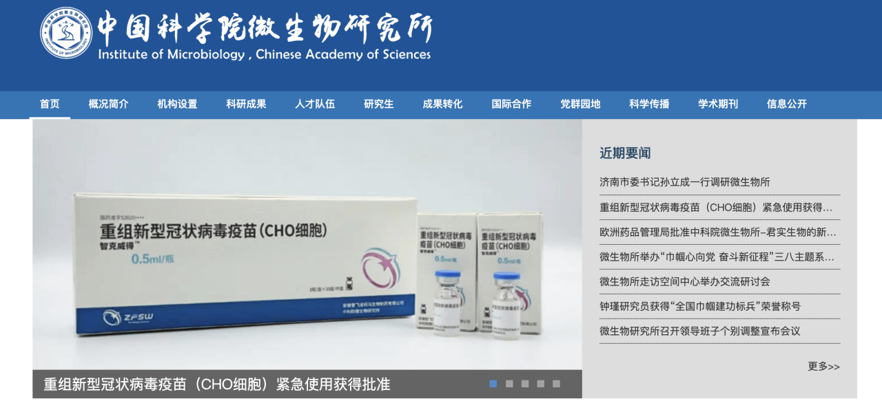 据中国科学院微生物研究所官网消息,3月10日,由中国科学院微生物研究所与合作企业共同研制的重组新型冠状病毒疫苗(CHO细胞)获准在中国紧急使用,成为中国第四种获准紧急使用的SARS-CoV-2疫苗,也是世界上第一种获准临床使用的SARS-CoV-2重组亚单位蛋白疫苗。